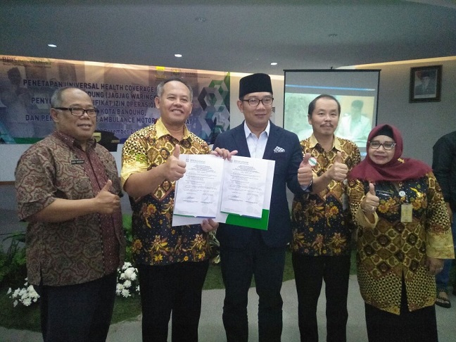 “Saat ini sudah 95% warga Kota Bandung terdaftar sebagai anggota JKN-KIS,†ujar Walikota Bandung, Ridwan Kamil pada sambutannya di acara Penetapan UHC JKN-KIS Kota Bandung (Jagjag Waringkas).